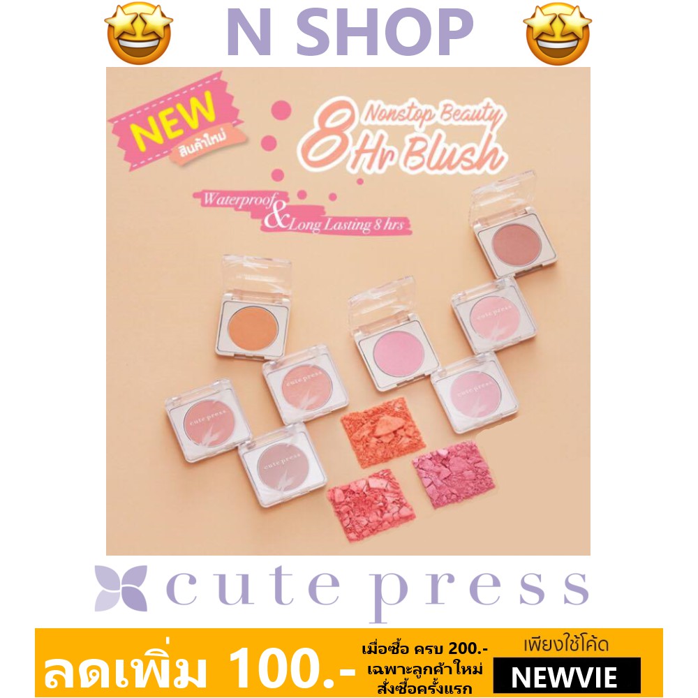 - ชื่อสินค้า บลัชออนกันน้ำติดทนนาน 8ชม. คิวท์เพรส CUTE PRESS 8HR NONSTOP BLUSH